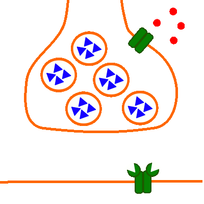 - Der Neurotransmitter löst sich von den Rezeptorstellen ab und liegt im synaptischen Spalt vor.